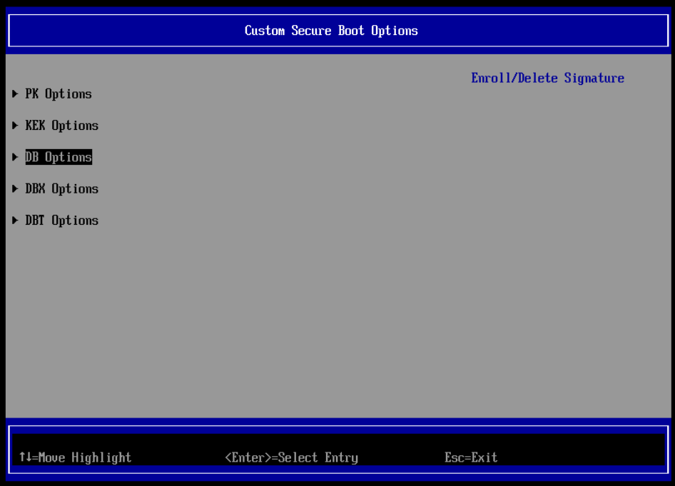 Una vez en la BIOS, navega a la sección de Secure Boot y busca la opción para gestionar claves: