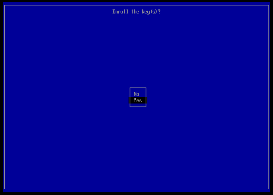 Al reiniciar, aparecerá el MOK Manager antes del arranque del sistema operativo. Aquí debemos confirmar la importación de nuestra clave: