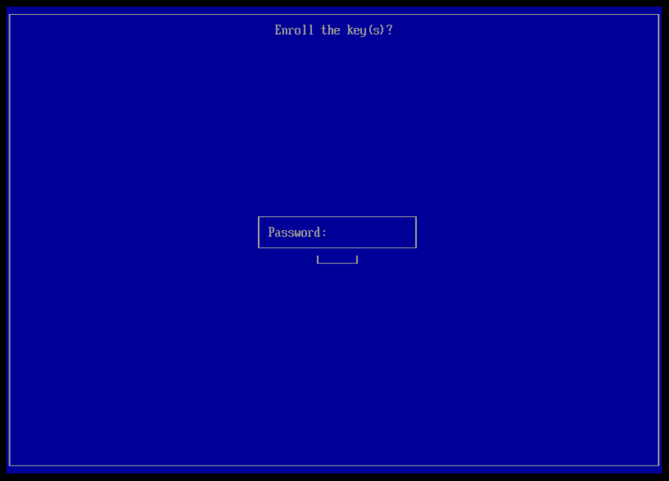 Introduce la contraseña que estableciste con mokutil --import: