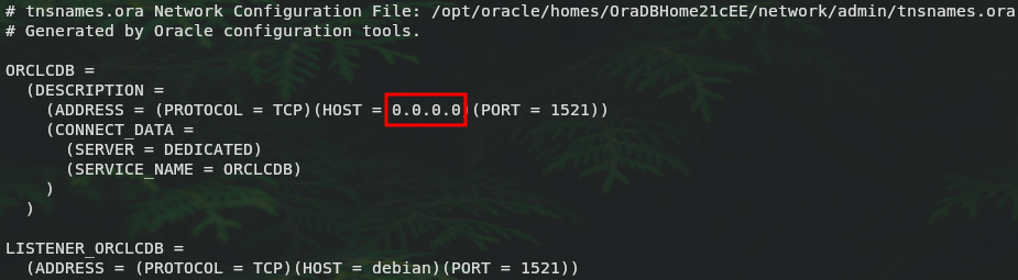 sudo nano /opt/oracle/homes/OraDBHome21cEE/network/admin/tnsnames.ora